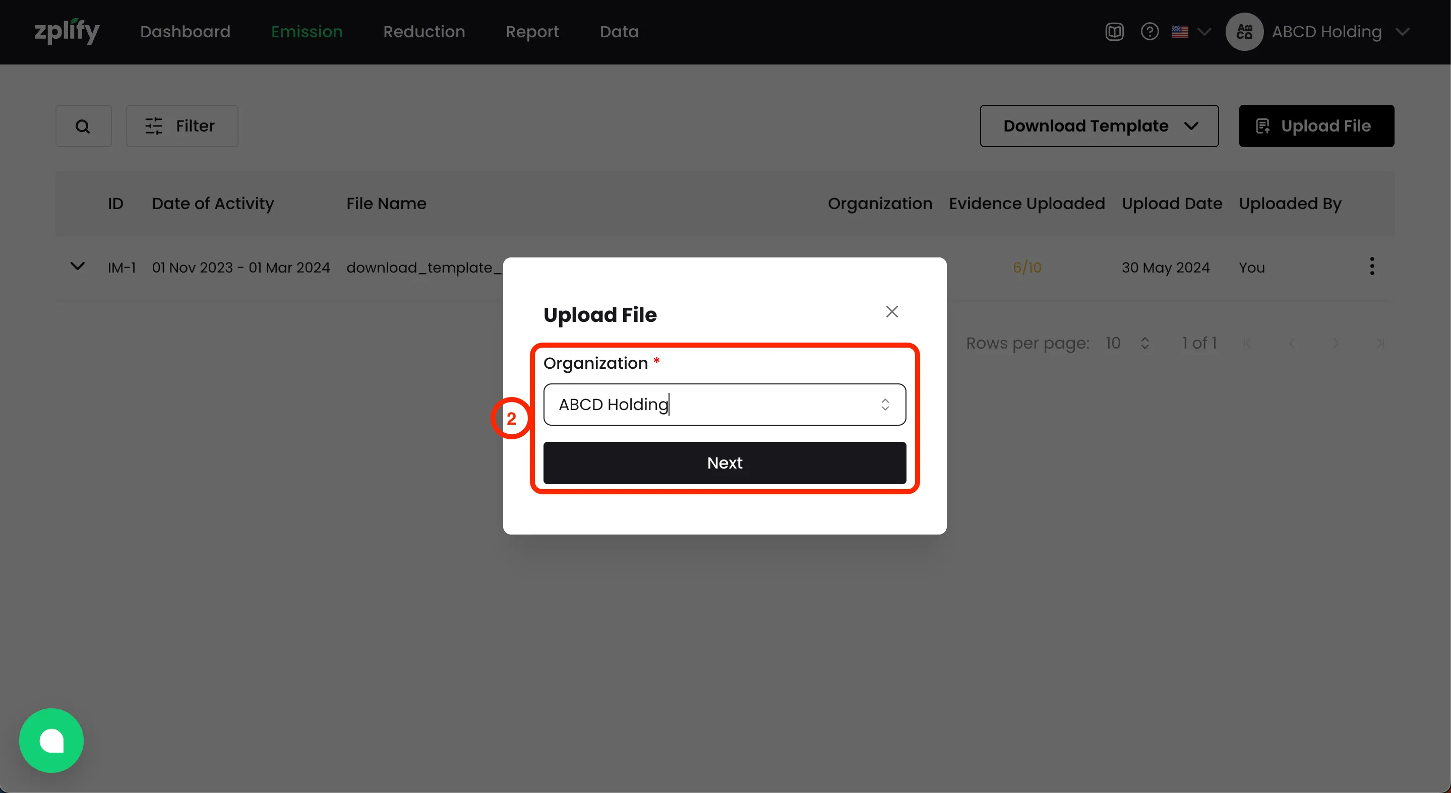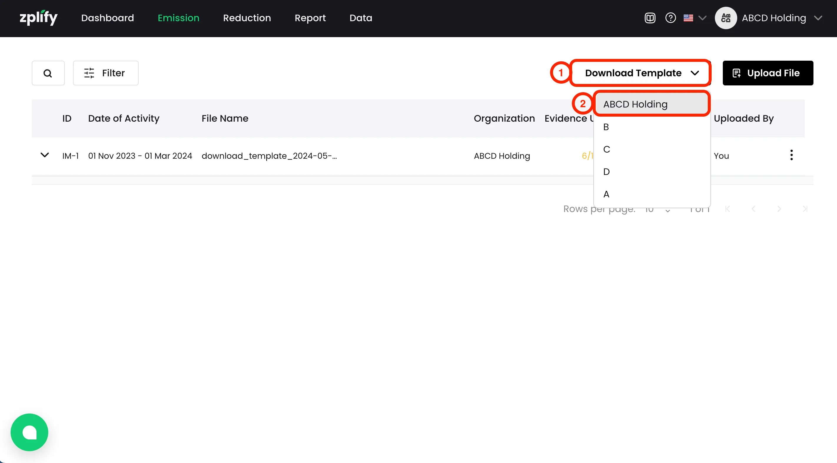 ดาวน์โหลดเทมเพลตเปล่าขององค์กรที่คุณต้องการนำเข้าข้อมูล โดย คลิกปุ่ม ดาวน์โหลดเทมเพลต (Download Template) > เลือกองค์กรที่คุณต้องการนำเข้าข้อมูล (จากโจทย์ตัวอย่าง ณ ที่นี้คุณจะเลือก ABCD Holding)