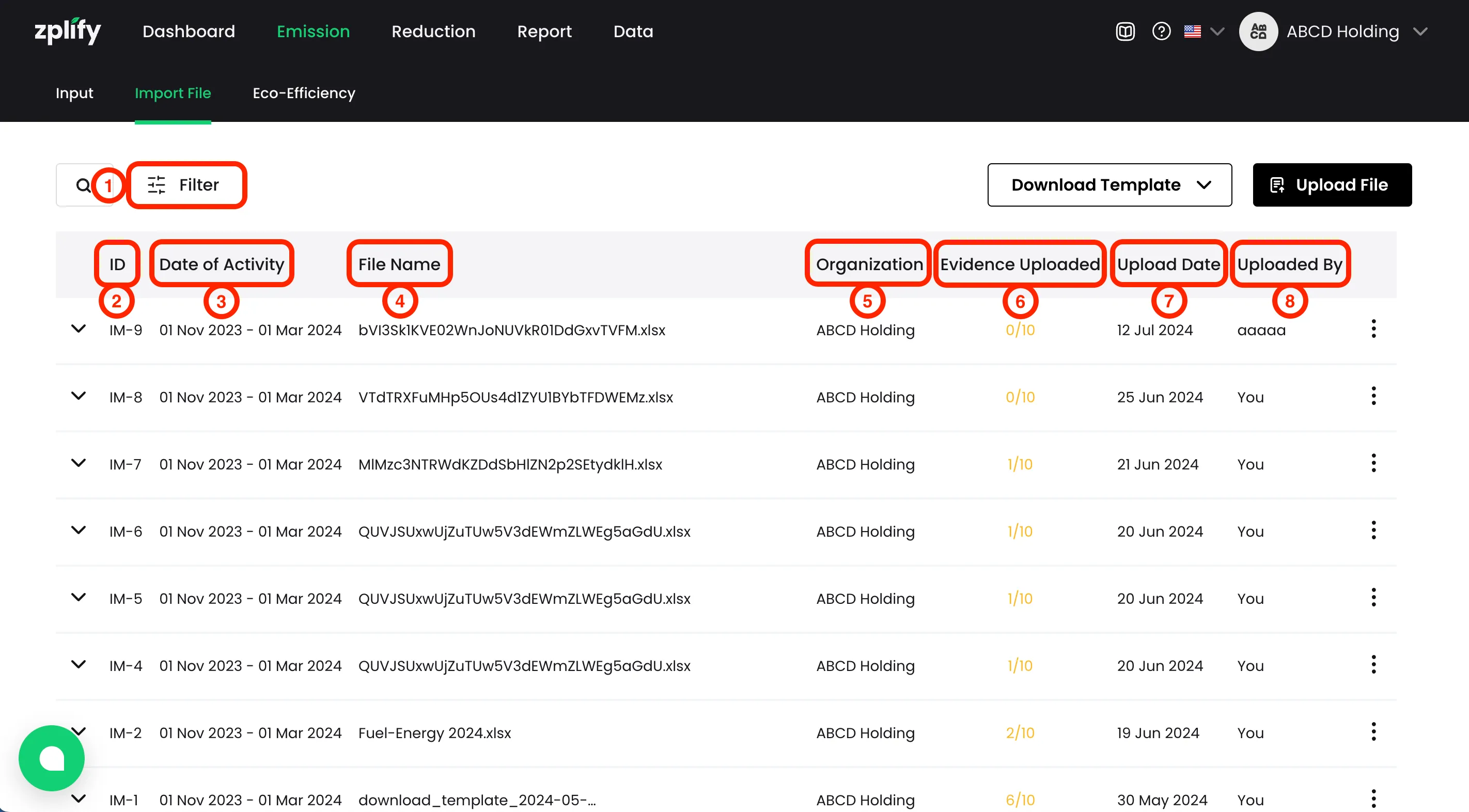 - ชื่อไฟล์ (File Name): ชื่อไฟล์ excel ที่คุณเคยอัปโหลดข้อมูลการปล่อย GHGs เข้ามาในระบบ
