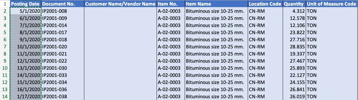 - จากไฟล์ข้อมูลดิบ คอลัมน์ที่แสดงถึง วันที่เกิดกิจกรรม ให้จัดรูปแบบวันที่เป็น “dd mmm yyyy” แล้วคัดลอก นำมาวางในชีท “Emission - Fuel” คอลัมน์ “Start Date”
